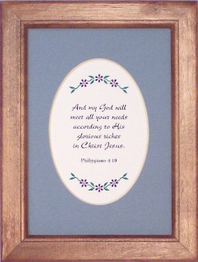 F5-OT001 - FRAMED 5x7: Do not be afraid or discouraged... 2 Chronicles 20:15 F5-OT002 - FRAMED 5x7: But He knows the way that I take... Job 23:10 F5-OT003 - FRAMED 5x7: I will lie down and sleep in peace... Psalm 4:8 F5-OT004 - FRAMED 5x7: Take delight in the Lord, and He... Psalm 37:4 F5-OT005 - FRAMED 5x7: As the deer pants for streams of... Psalm 42:1 F5-OT006 - FRAMED 5x7: Create in me a clean heart, O God... Psalm 51:10 F5-OT007 - FRAMED 5x7: This is the day the Lord has made... Psalm 118:24 F5-OT008 - FRAMED 5x7: Thy word is a lamp unto my feet... Psalm 119:105 F5-OT009 - FRAMED 5x7: Unless the Lord builds the house... Psalm 127:1 F5-OT010 - FRAMED 5x7: Train a child in the way he should... Proverbs 22:6 F5-OT011 - FRAMED 5x7: You will keep him in perfect peace... Isaiah 26:3 F5-OT012 - FRAMED 5x7: Not by might, nor by power, but... Zechariah 4:6 F5-OT013 - FRAMED 5x7: But as for me and my house, we... Joshua 24:15 F5-OT014 - FRAMED 5x7: Charm is deceitful, and beauty is... Proverbs 31:30 F5-OT015 - FRAMED 5x7: Fear God and keep his commands... Ecclesiastes 12:13 F5-OT016 - FRAMED 5x7: "Holy, holy, holy is the Lord ..." Isaiah 6:3 F5-OT017 - FRAMED 5x7: Keep me as the apple of Your eye... Psalm 17:8 F5-OT018 - FRAMED 5x7: Let the words of my mouth and the... Psalm 19:14 F5-OT019 - FRAMED 5x7: The earth is the Lord's, and the fulness... Psalm 24:1 F5-OT020 - FRAMED 5x7: Trust in the Lord, and do good; so you will... Psalm 37:3 F5-OT021 - FRAMED 5x7: So teach us to number our days that we may... Psalm 90:12 F5-OT022 - FRAMED 5x7: Enter His gates with thanksgiving, and His... Psalm 100:4 F5-OT023 - FRAMED 5x7: The fear of the Lord is the beginning of wisdom Psalm 111:10 F5-OT024 - FRAMED 5x7: Thy word have I hid in my heart, that I might... Psalm 119:11 F5-OT025 - FRAMED 5x7: I was glad when they said unto me, "Let us go..." Psalm 122:1 F5-OT026 - FRAMED 5x7: For You created my inmost being; You knit me... Psalm 139:13 F5-OT027 - FRAMED 5x7: I praise You because I am fearfully and... Psalm 139:14 F5-OT028 - FRAMED 5x7: Commit your work to the Lord, and your... Proverbs 16:3 F5-OT029 - FRAMED 5x7: As iron sharpens iron, so one man sharpens... Proverbs 27:17 F5-OT030 - FRAMED 5x7: Where there is no vision, the people perish... Proverbs 29:18 F5-OT031 - FRAMED 5x7: Call to Me, and I will answer you, and show... Jeremiah 33:3 F5-NT001 - FRAMED 5x7: For what profit is it to a man if... Matthew 16:26 F5-NT002 - FRAMED 5x7: All things are possible with God. Mark 10:27 F5-NT003 - FRAMED 5x7: Therefore, if anyone is in Christ... 2 Corinthians 5:17 F5-NT004 - FRAMED 5x7: But he said to me, "My grace is..." 2 Corinthians 12:9 F5-NT005 - FRAMED 5x7: He who has begun a good work ... Philippians 1:6 F5-NT006 - FRAMED 5x7: And my God will meet all your... Philippians 4:19 F5-NT007 - FRAMED 5x7: Whatever you do, work at it with all... Colossians 3:23 F5-NT008 - FRAMED 5x7: Now faith is the assurance of things... Hebrews 11:1 F5-NT009 - FRAMED 5x7: And we know that in all things God... Romans 8:28 F5-NT010 - FRAMED 5x7: Submit yourselves therefore to God... James 4:7 F5-NT011 - FRAMED 5x7: See what love the Father has given... 1 John 3:1 F5-NT012 - FRAMED 5x7: God is light; in Him there is no... 1 John 1:5 F5-NT013 - FRAMED 5x7: Let your light so shine before men... Matthew 5:16 F5-NT014 - FRAMED 5x7: I can do all things through Christ... Philippians 4:13 F5-NT015 - FRAMED 5x7: I will never leave you or forsake you. Hebrews 13:5 F5-NT016 - FRAMED 5x7: I am the Alpha and the Omega... Revelation 22:13 F5-NT017 - FRAMED 5x7: But seek ye first the Kingdom of... Matthew 6:33 F5-NT018 - FRAMED 5x7: Love the Lord your God with all... Mark 12:30 F5-NT019 - FRAMED 5x7: For God so loved the world, that He... John 3:16 F5-NT020 - FRAMED 5x7: "I am the Way, the Truth, and the..." John 14:6 F5-NT021 - FRAMED 5x7: Do not be deceived; God is not mocked... Galatians 6:7 F5-NT022 - FRAMED 5x7: In everything give thanks... 1 Thessalonians 5:18 F5-NT023 - FRAMED 5x7: If any of you lacks wisdom, let him... James 1:5 F5-NT024 - FRAMED 5x7: Every good and perfect gift is from... James 1:17 F5-NT025 - FRAMED 5x7: Cast all your cares on Him, for He... 1 Peter 5:7